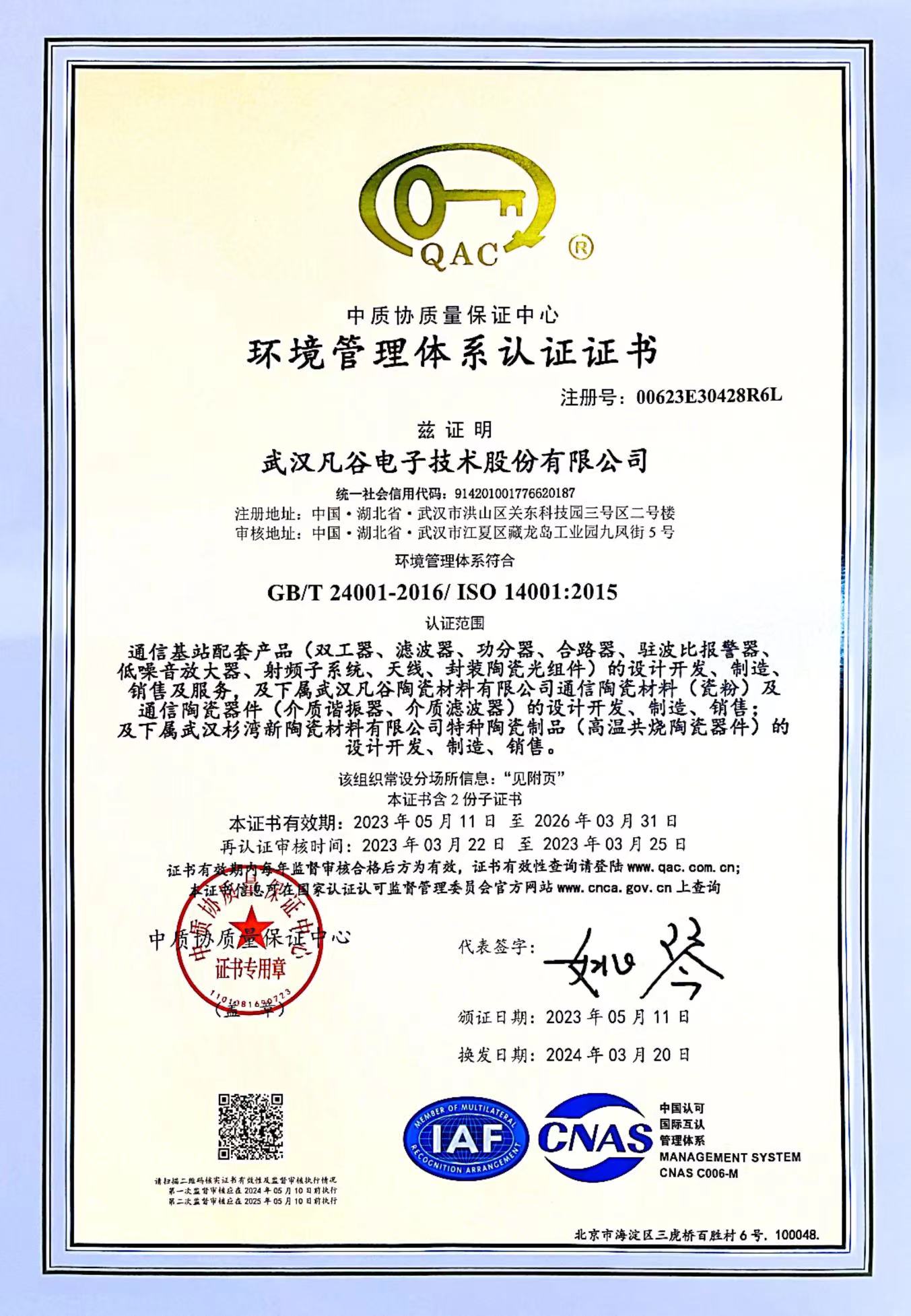 公司自2004年通過ISO14001環(huán)境管理體系認(rèn)證,目前保持有ISO14001:2015管理體系認(rèn)證證書。